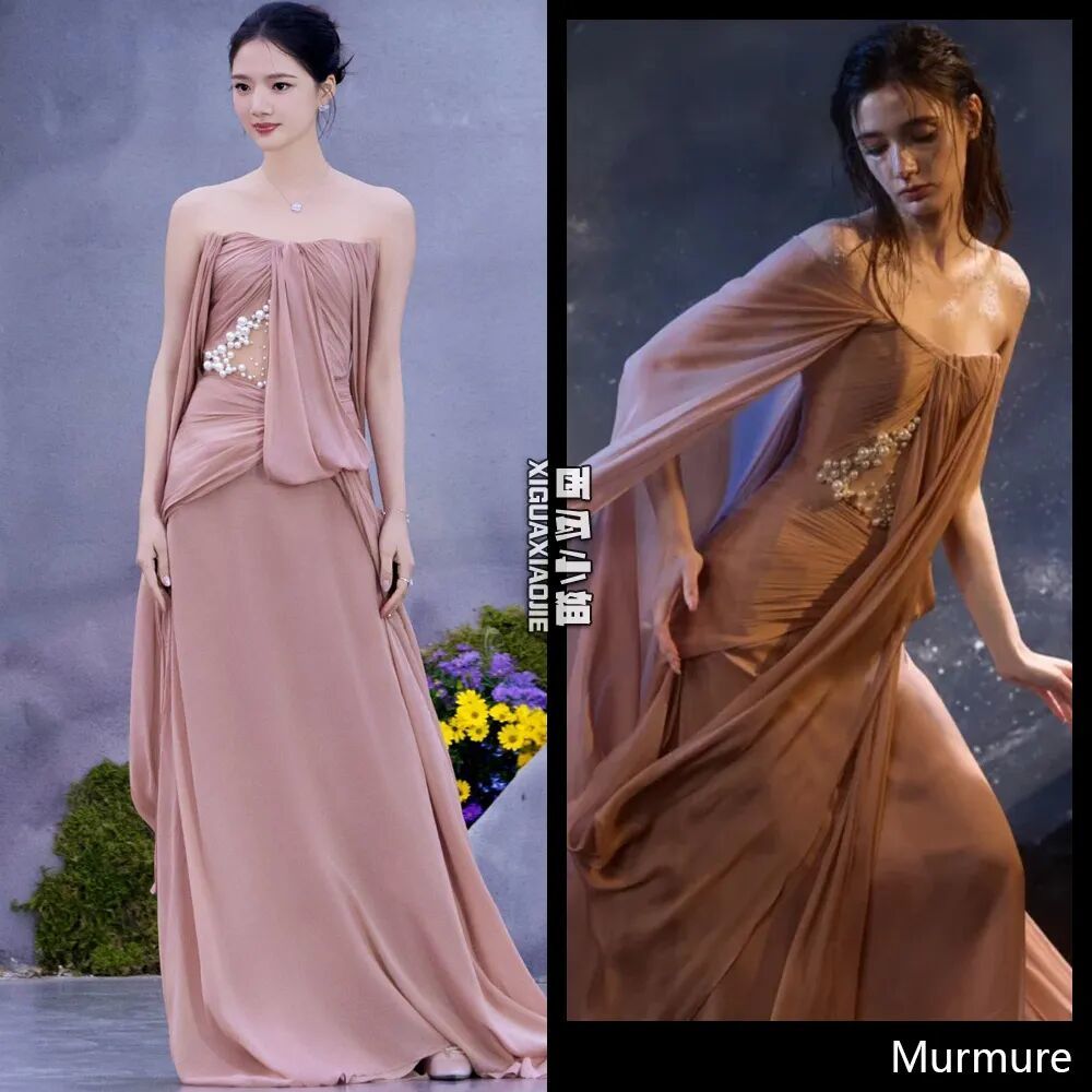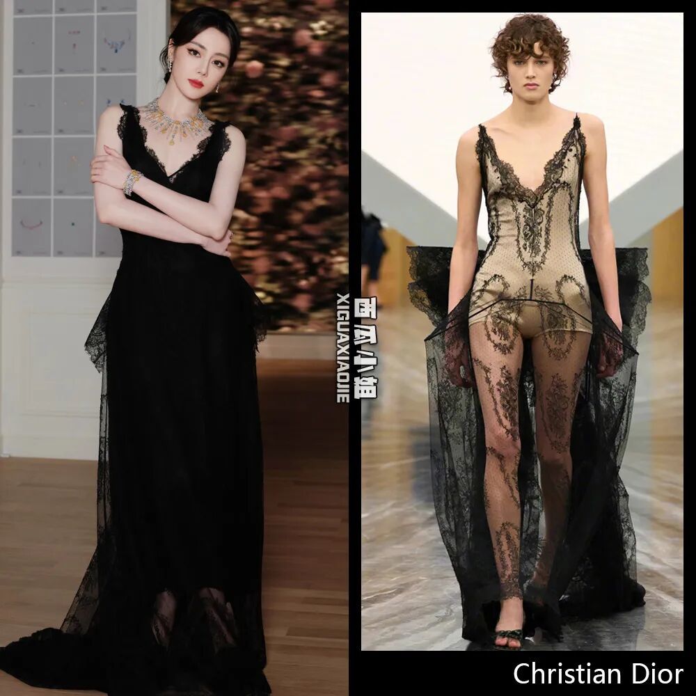 这条裙子,内娱女明星穿起来肯定是要加内衬的。好在迪丽热巴的穿法还算和谐,保留了一些蕾丝质感,依然能让你感受到精致轻盈的浪漫性感,也增加了优雅华贵的气质。
